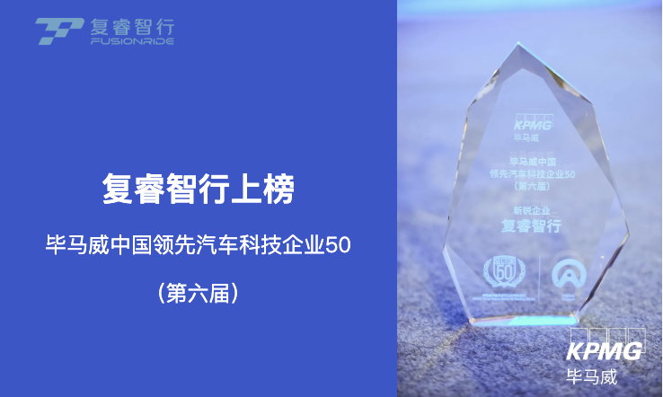复睿智行荣获毕马威中国“领先汽车科技50”新锐企业称号单
