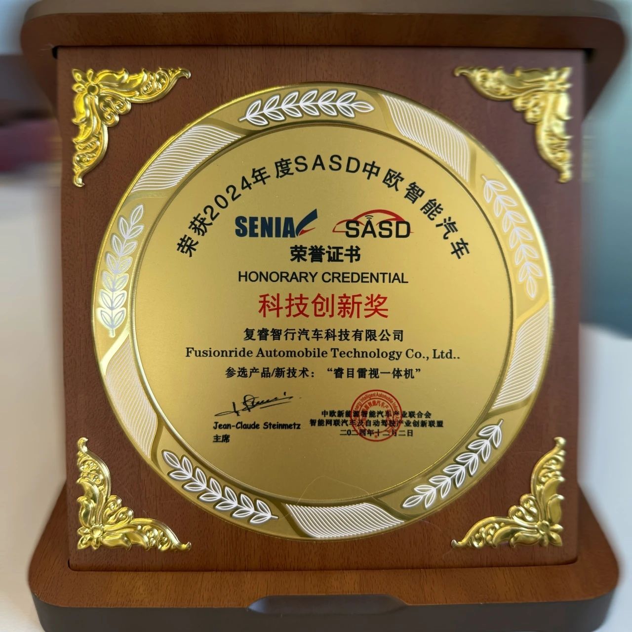 12月2日至4日,以“AI大模型赋能:智能汽车创新与高质量发展”为主题的第五届智能网联汽车与自动驾驶创新国际大会在安徽芜湖隆重召开。复睿智行“睿目雷视一体机”项目荣获2024年度SASD中欧智能汽车科技创新奖。